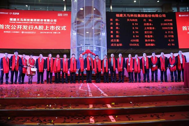 上圖為天馬科技領導與參加上市儀式的領導、嘉賓合影留念