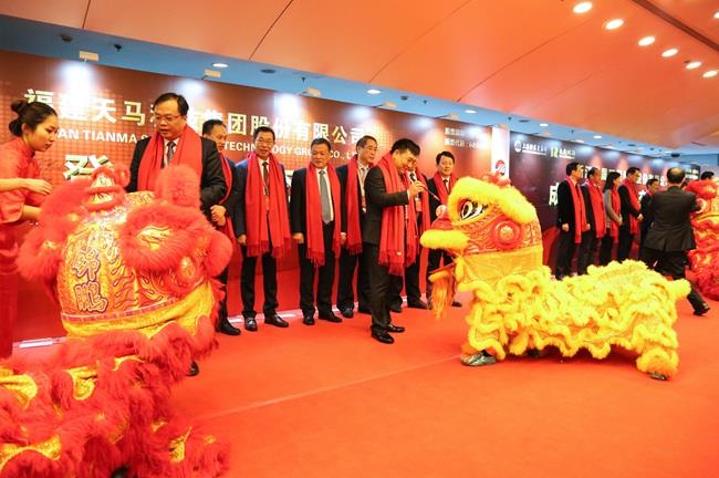 上市儀式上,福清市張帆市長、海通證券瞿秋平總裁分別在發(fā)表了熱情洋溢的致辭,向天馬科技的成功上市表示熱烈祝賀,并表示將一如既往地權利支持天馬科技的發(fā)展。天馬科技陳慶堂董事長與上海證券交易領導簽訂《上市協(xié)議書》,并與上海證券交易領導互贈上市紀念品。