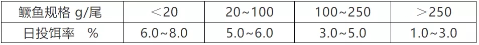 ?根據(jù)池塘鱖魚數(shù)量,參考日投餌表,并根據(jù)氣候、水溫、水質、鱖魚生長攝食狀況來推算日投餌量。