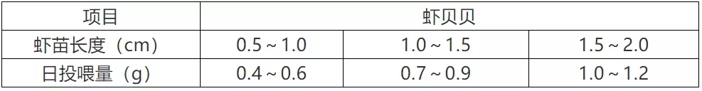 3、本表投喂量根據(jù)天氣、水溫、水質(zhì)、蝦苗健康狀況及攝食情況來調(diào)整。